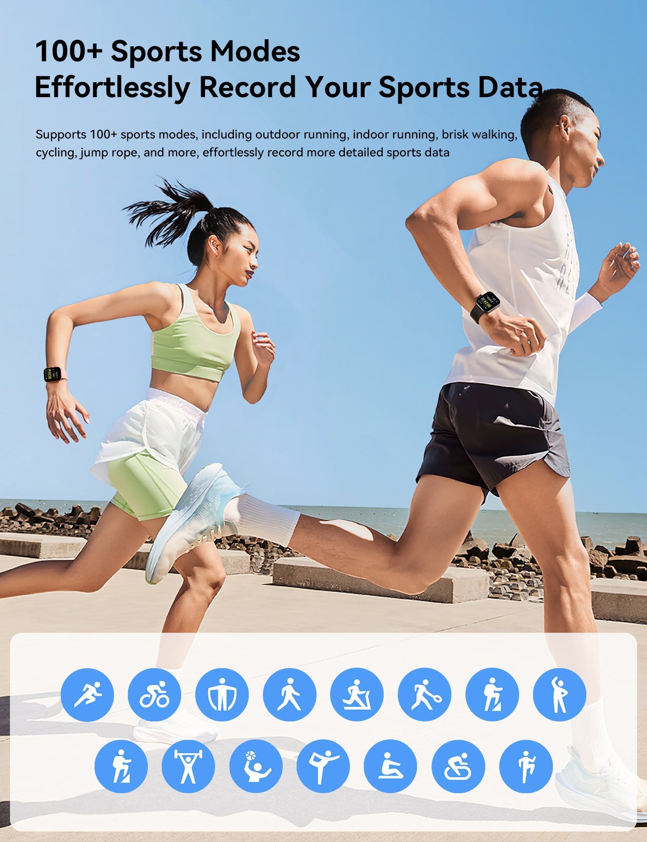 2. 100 sports modes, including running, cycling, yoga, and more. Automatically recognizes and records your sports data