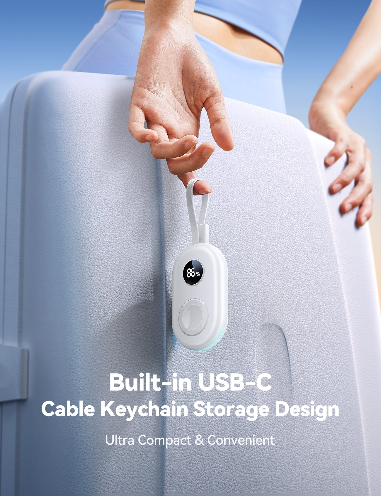 - Built-in Type-C cable supports input and output