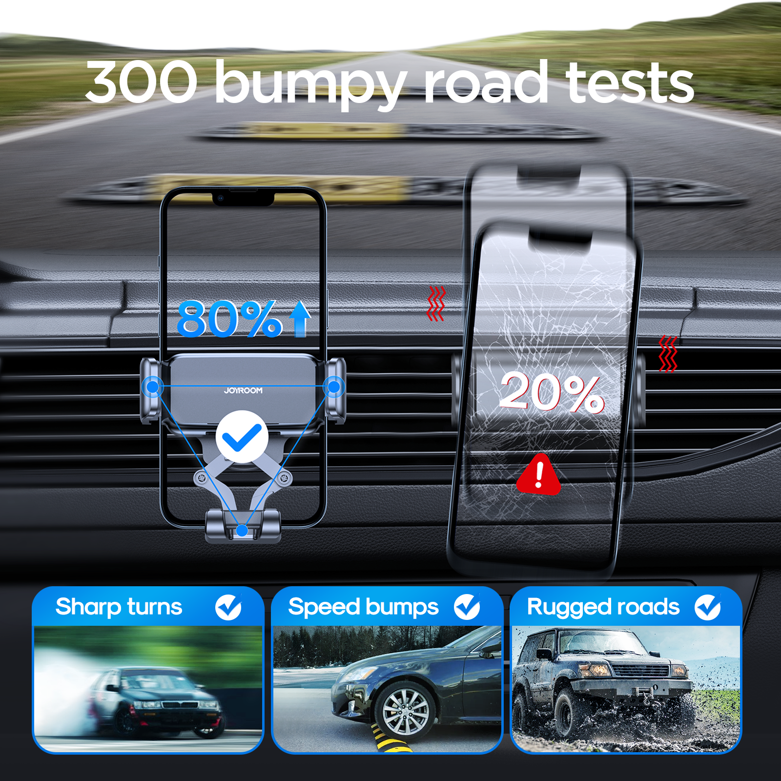 - Stable & Easy to Install Mounts securely on air vents, windshields, or dashboards without tools. The triangle structure and safety buckle keep your phone steady—even on bumpy roads.