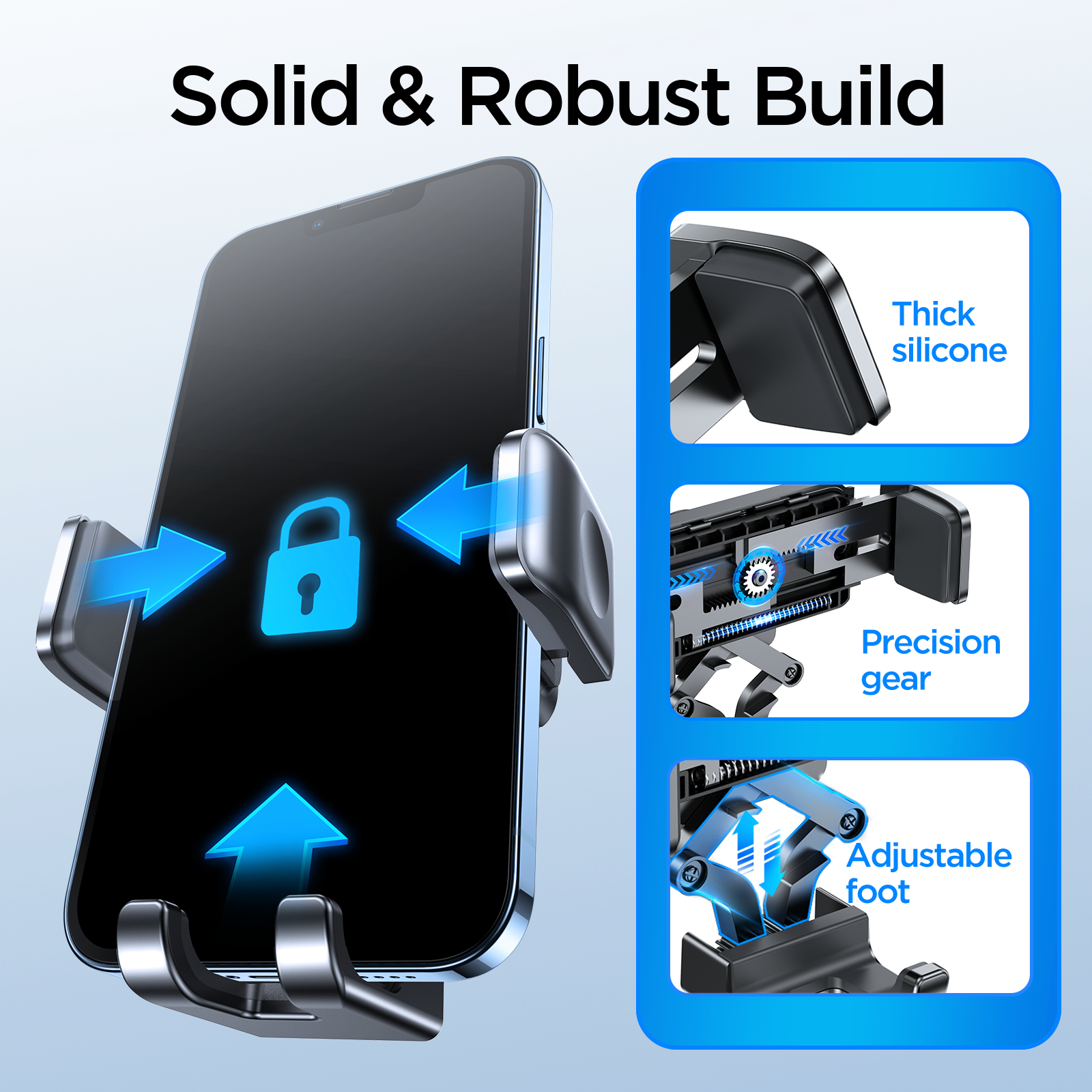 - Strong Suction & Non-Slip Pad Powerful suction cup and thickened silicone pad ensure a firm grip and protect your phone from slipping or scratching.